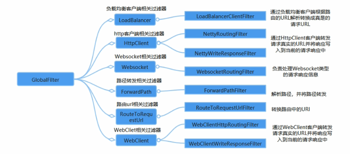 org.springframework.cloud.gateway.handler.FilteringWebHandler#handle()方法会加载全局过滤器,与前面的过滤器合并后根据order排序,组织过滤器链